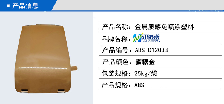蜜糖金金屬質(zhì)感免噴涂 ABS料在汽車外飾上的廣泛應(yīng)用。這款產(chǎn)品采用編號ABS-D1203B原料生產(chǎn)制作,能夠達到金屬質(zhì)感的效果。色澤潤亮,效果超出了客戶的預(yù)期,深受客戶的喜愛。客戶看到我們的樣板后評價道材料非常亮、非常靚、非常炫、非常閃。