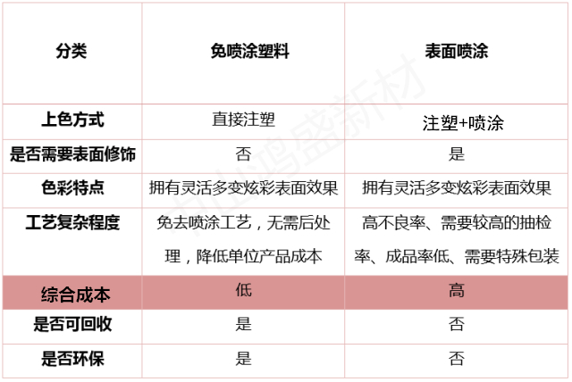 很多客戶在計算成本時,只考慮“塑料原料的價格+噴涂費用 VS 免噴涂原料成本”,而忽略了背后巨大的隱性成本:比如噴漆前后物料運輸的成本、噴涂損耗成本、時間成本等等。以噴漆為例:目前許多城市要求油性漆都要整改為水性漆,噴漆廠選址也要遠離市區。單單這背后的噴漆件的工藝和物流成本,你算過沒有?