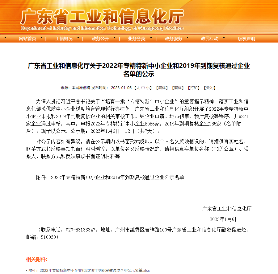 經過地市推薦、專家評審、征求意見等程序,鴻盛新材料從眾多的家廣東省創新型中小企業中脫穎而出,榮獲2022年廣東省“專精特新”中小企業稱號。這是對公司多年以來的產業價值、行業貢獻的肯定,也是對公司主營業務專業化的認可。